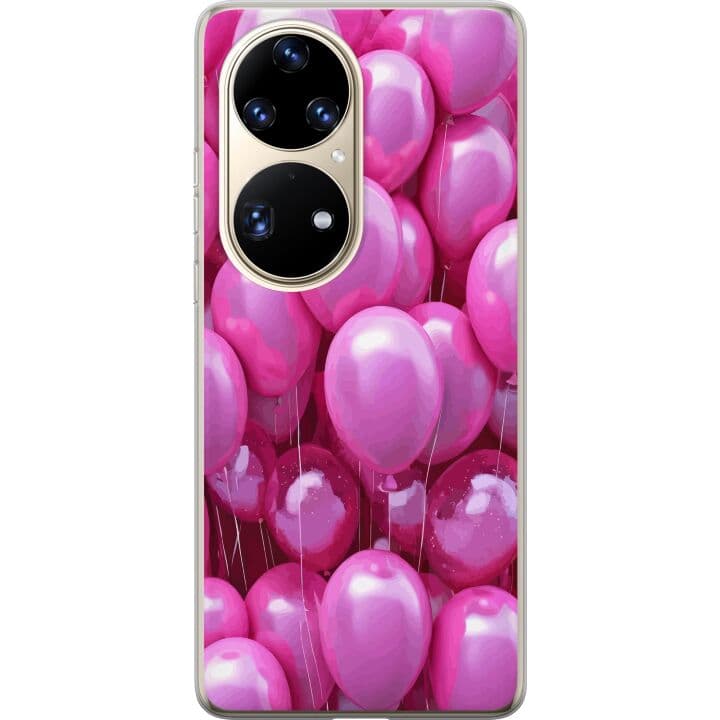 Huawei P50 Pro Genomskinligt Skal Rosa ballonger festlig glansig design perfekt för födelsedag bröllop eller kärleksfulla tillfällen