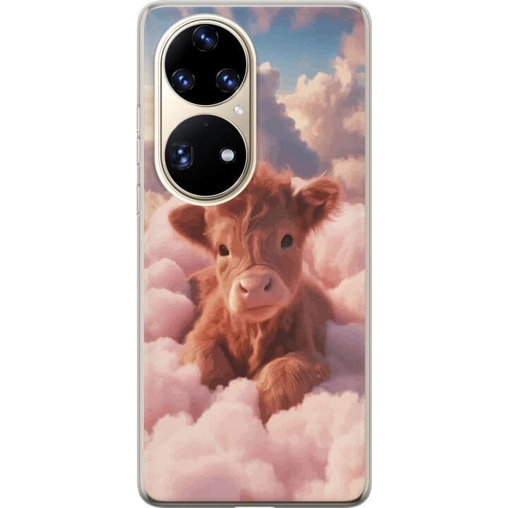 Huawei P50 Pro Genomskinligt Skal Söt kalv bland moln drömlik rosa design med mjuka färger varm känsla av lugn trygghet glädje och fantasi