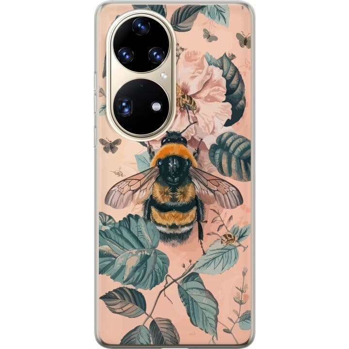 Huawei P50 Pro Genomskinligt Skal Humla på blomma i pastelltoner vacker naturinspirerad design som förmedlar lugn energi och harmoni