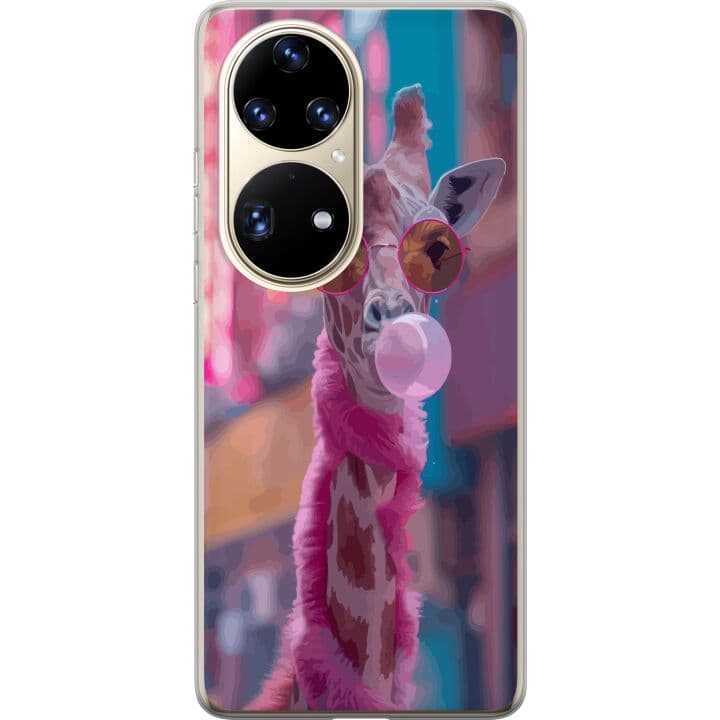Huawei P50 Pro Genomskinligt Skal Giraff med bubbelgum, rolig färgstark design i stadsmiljö, popkonststil med lekfull energi, humor och kreativa tone