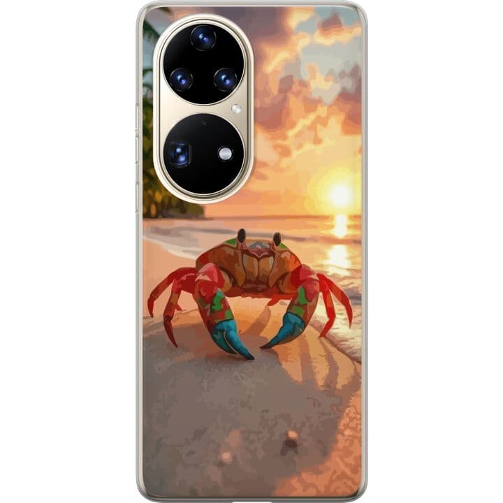 Huawei P50 Pro Genomskinligt Skal Tropisk strandkrabba färgglad design med solnedgång hav vågor och varm semesterkänsla inspirerad av tropisk natur