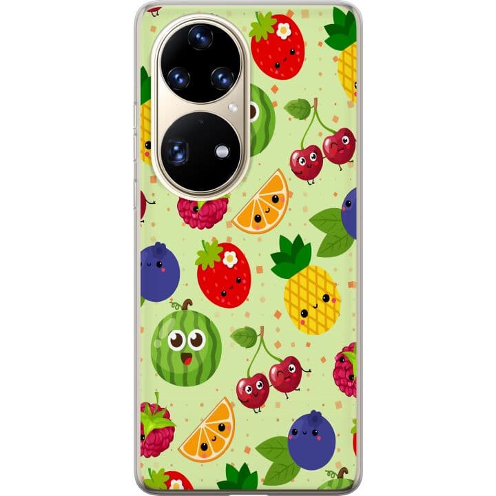 Huawei P50 Pro Genomskinligt Skal Fruktmönster med ananas, melon och körsbär färgglad design som sprider glädje och sommarenergi