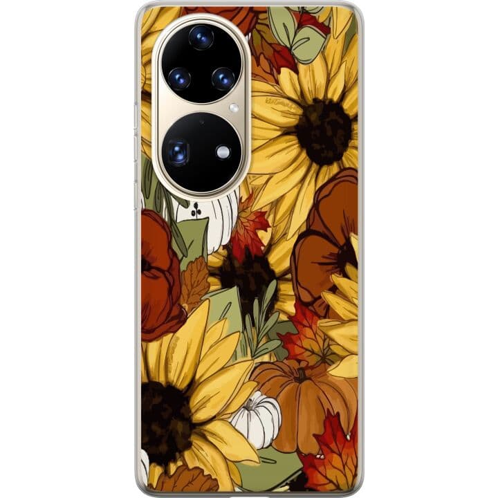 Huawei P50 Pro Genomskinligt Skal Höstlig design med solrosor och pumpor, naturinspirerad varm färgpalett för mysiga höststunder året runt