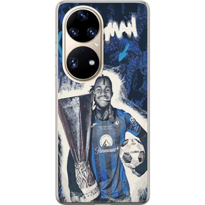 Huawei P50 Pro Genomskinligt Skal Ademola Lookman fotbollsdesign med pokal och blå bakgrund, sportmotiv med energi, passion och vinnarkänsla för fans