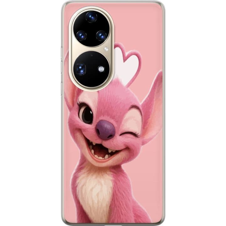 Huawei P50 Pro Genomskinligt Skal Ängel rosa figur blinkar gullig design med hjärta kärlek lekfullhet och söt energi i pastellfärger