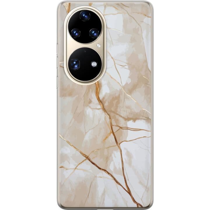 Huawei P50 Pro Genomskinligt Skal Vit marmor med guldådror, elegant lyxig design perfekt för dig som älskar stil och klass