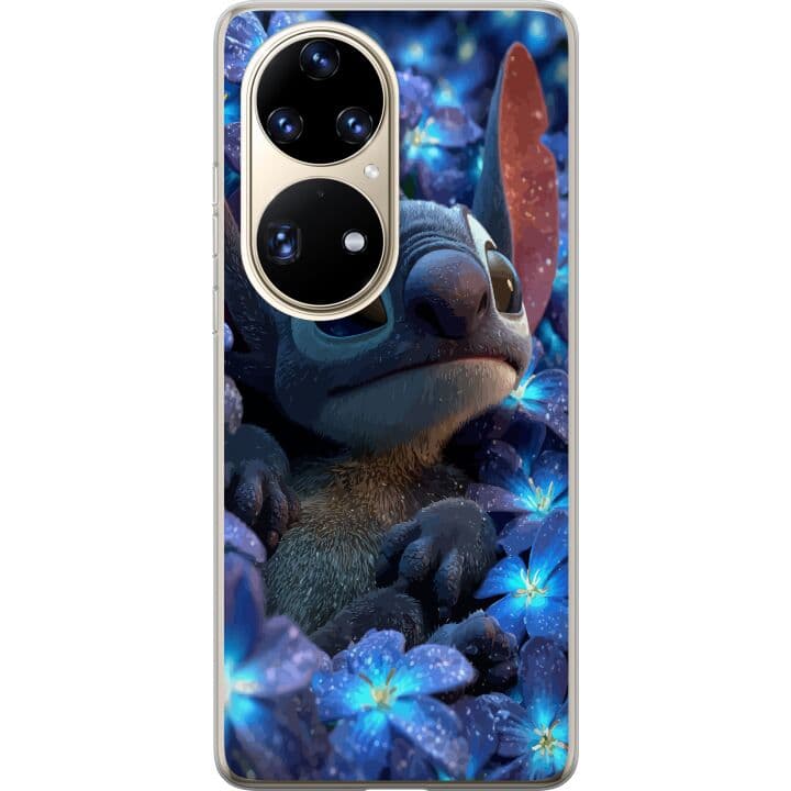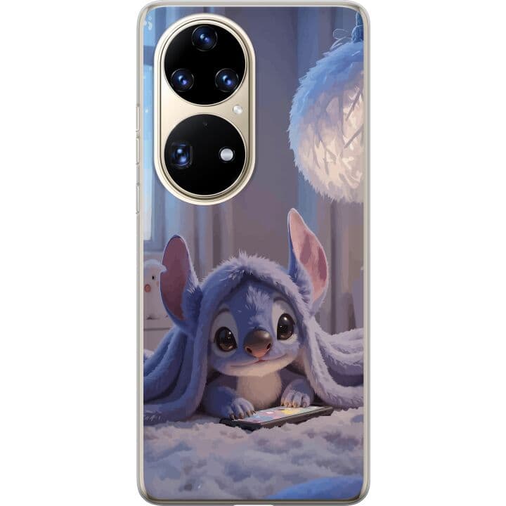 Huawei P50 Pro Genomskinligt Skal Stitch under filt med telefon kvällsmys i blå toner charmig drömlik design för alla som älskar söt stil