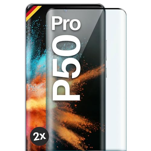 moex Helskärmsskyddsglas kompatibelt med Huawei P50 Pro – skyddsfilm kantlös, hel skärm, böjd 3D skyddsglasfolie, klar 2 x svart
