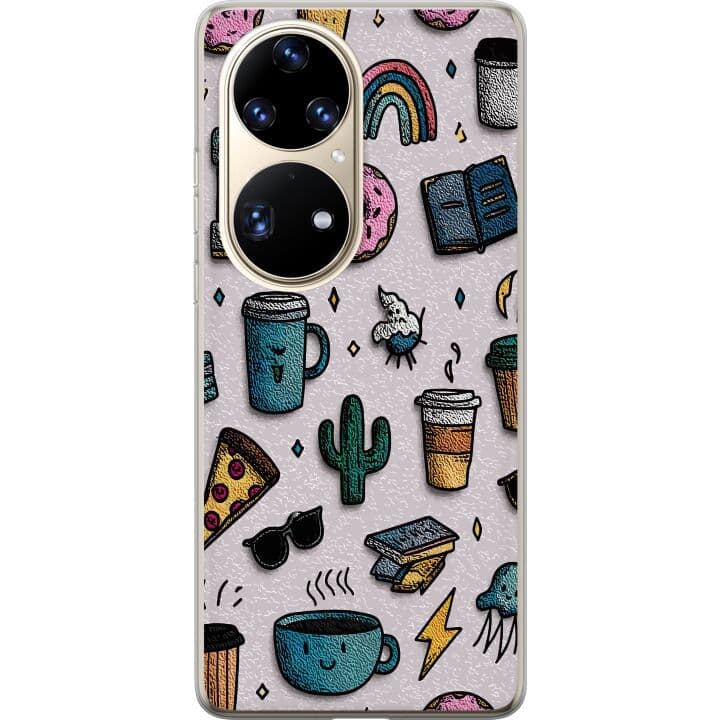 Huawei P50 Pro Genomskinligt Skal Kaffe och donut mönster med lekfull färgglädje och retro känsla perfekt för dig som älskar fika och glädje