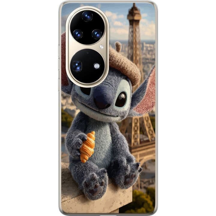 Huawei P50 Pro Genomskinligt Skal Stitch i Paris med croissant och Eiffeltorn romantisk lekfull design med gullig charm och färgglädje