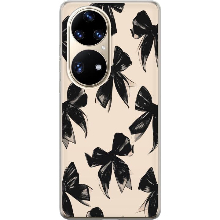 Huawei P50 Pro Genomskinligt Skal Svarta rosetter på beige bakgrund elegant tidlös design med mjuka kontraster och lyxig känsla