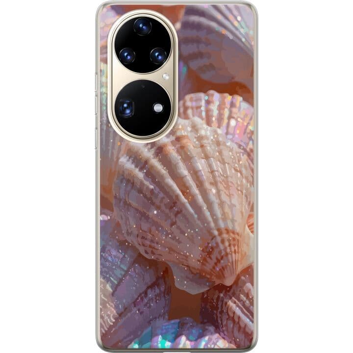Huawei P50 Pro Genomskinligt Skal Snäckskal glittrande design i pastell och skimrande nyanser inspirerad av hav strand och sommarens vackra färger.
