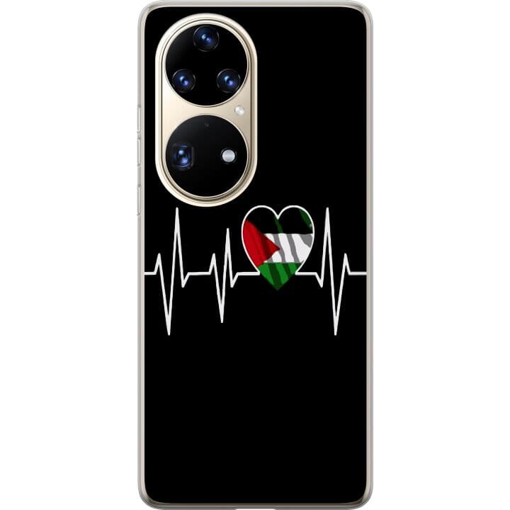 Huawei P50 Pro Genomskinligt Skal Palestinahjärta med EKG-linje flaggfärger svart röd vit grön stark symbol för kärlek och frihet