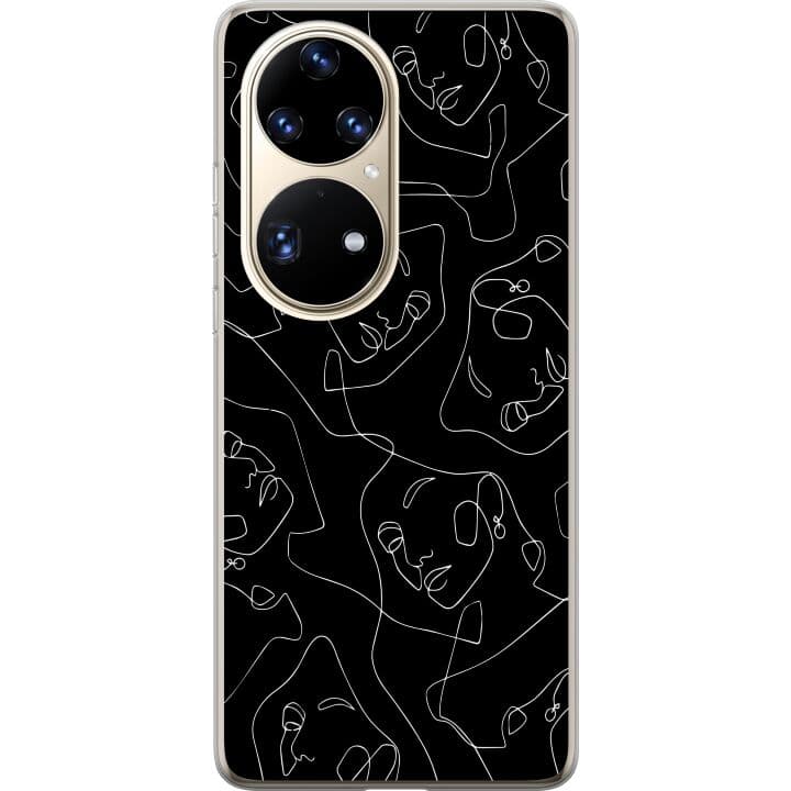 Huawei P50 Pro Genomskinligt Skal Abstrakta ansikten linjekonst i vitt på mörk bakgrund modern minimalistisk stil för konstälskare