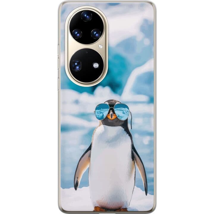 Huawei P50 Pro Genomskinligt Skal Pingvin med glasögon, rolig vinterdesign, humoristisk kall stil med is, hav och trendig modern känsla av kyla och c
