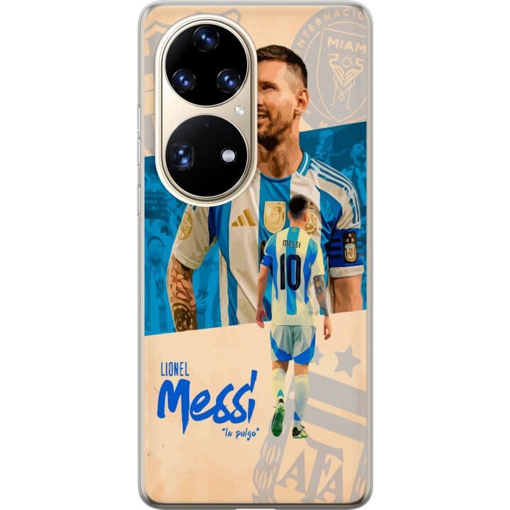 Huawei P50 Pro Genomskinligt Skal Lionel Messis porträtt i Argentinas tröja ikonisk design för fotbollsfans med passion och energi