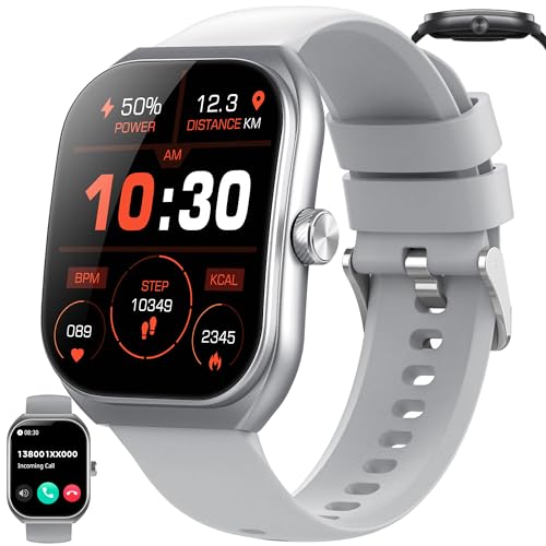 2,01 tum AMOLED smart klocka för män med Bluetooth 5.2-samtal, Smartwatch, kompatibel med Samsung Huawei Xiaomi Android, iOS, stegräknare, gps, delad klocka, 123, sport, pulsmätare (silver)
