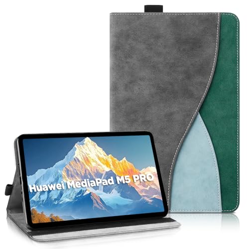 AsWant fodral för Huawei MediaPad M5/M5 PRO (10,8 tum) – ultratunn business tricolor surfplatta med plånbok och stativfunktion skyddsfodral kompatibel med Huawei Mediapad M5 fodral (grå)