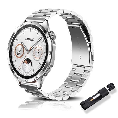 RoYiio Klockarmband för Huawei Watch GT 5 46 mm/GT 5 Pro 46 mm/Ultimate armband 22 mm vackert polerad metall rostfritt stål klockarmband för OnePlus Watch 3 Pro/3/2R /2 – silver