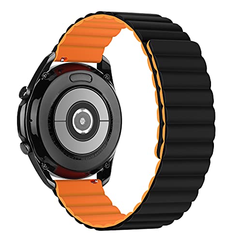 Tasikar 20 mm armband kompatibelt med Samsung Galaxy Watch 4/Watch 3 41 mm/Huawei Watch GT 2, armband, silikon, magnetlås, [dubbelsidigt bärbart] klockarmband för Galaxy Watch 42 mm (orangesvart)