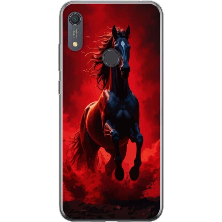 Kompatibelt Mobilskal till Huawei Y6s (2019) Kraftfull svart häst i röda moln och damm med dramatisk belysning