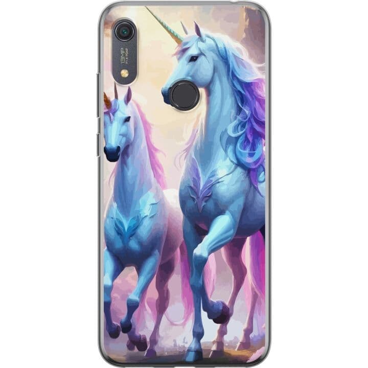 Kompatibelt Mobilskal till Huawei Y6s (2019) Magiska enhörningar i pastellfärgad sagovärld med skimrande manar