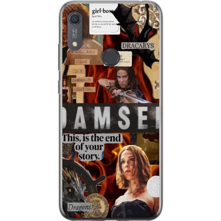 Kompatibelt Mobilskal till Huawei Y6s (2019) Fantasikollage med kvinnlig krigare drakar eld och svärd i dramatisk medeltida stil