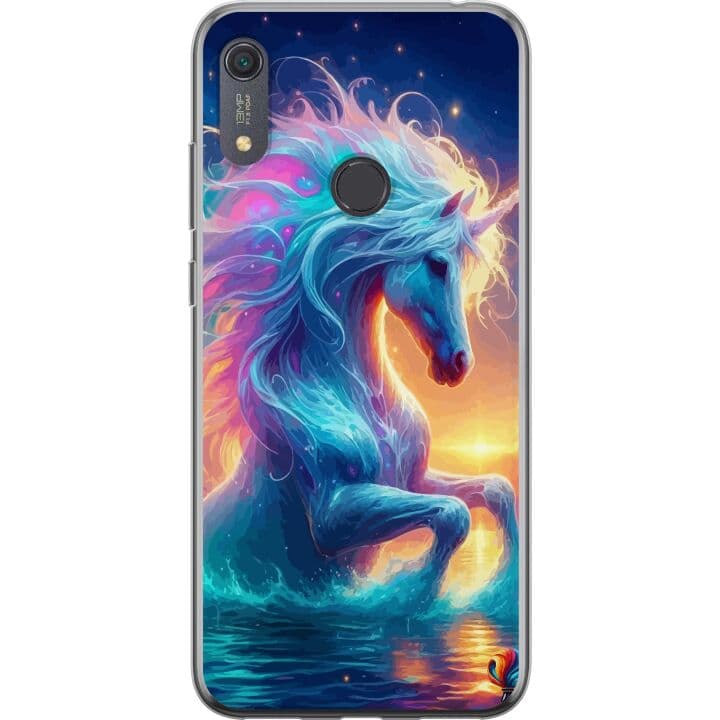 Kompatibelt Mobilskal till Huawei Y6s (2019) Färgsprakande enhörning i vatten med regnbågsljus och drömlik fantasyatmosfär