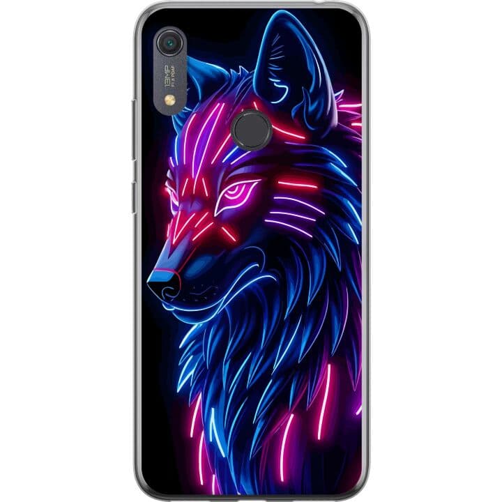 Kompatibelt Mobilskal till Huawei Y6s (2019) Neonupplyst varg i blått och rosa ljus med futuristisk cyberpunkkänsla