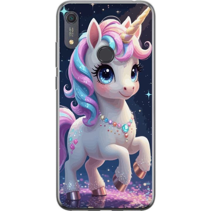 Kompatibelt Mobilskal till Huawei Y6s (2019) Söt enhörning med stora ögon, pastellfärger och glittrande detaljer i sagomiljö