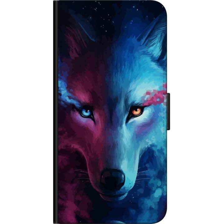 Kompatibelt Plånboksfodral till Huawei Y6s (2019) Närbild av varg i blått och lila färgspel med kosmisk mystisk stämning