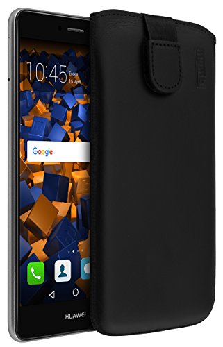 mumbi äkta läderfodral kompatibel med Huawei Y7 skal läder väska Case Wallet, svart