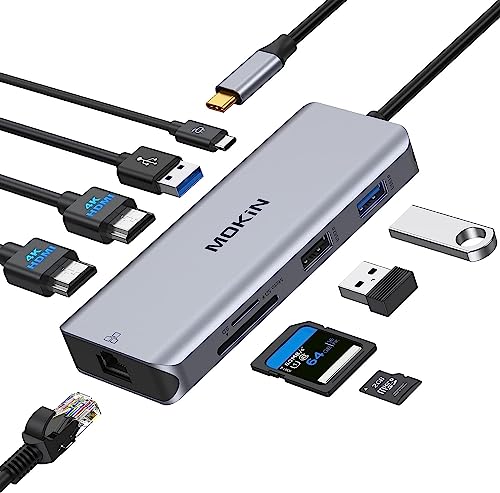 Hopday USB C-hub, 10 i 1 dockningsstation med dubbla bildskärmar, laptop adapter (Gigabit Ethernet, 4K HDMI, USB 3.0, PD 100 W, 3,5 mm MIC, SD/TF-läsare) för MacBook Pro/Air, HP, Lenovo, Dell