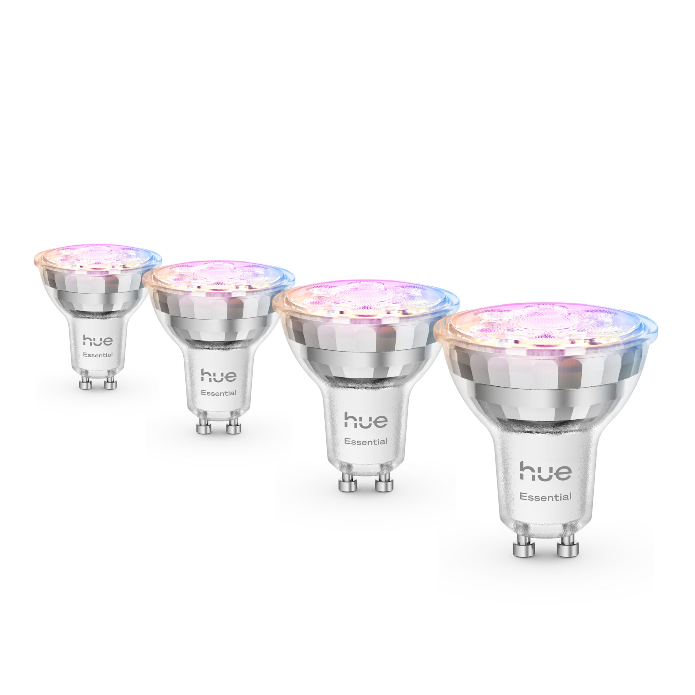 Philips Hue Essential Smart LED GU10 spotlight, White and color ambiance, 4,7 W, 2200 K-6 500K, 345 lumen, Dimbar, Fungerar med Alexa, Google Assistant och Apple Home, 4-pack