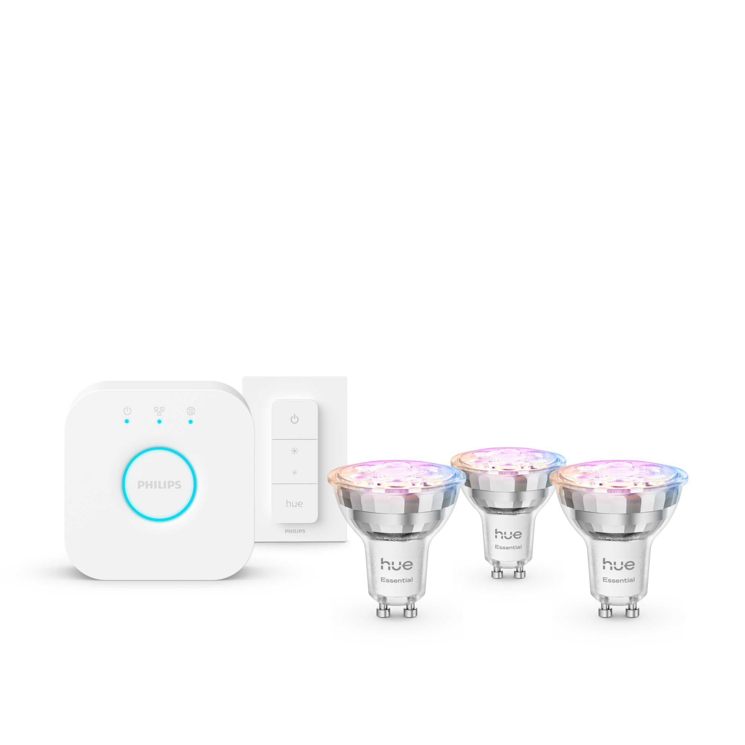 Philips Hue Essential startpaket: 3 st GU10 ljuskällor + Dimmer Switch + Bridge