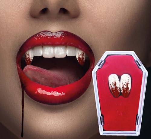 FIESTAS GUIRCA | Blodiga huggtänder med termoplast (Vampyr tänder) - Halloween smink och maskeradfester - tillbehör till vampyr och skräck kostym - vit, röd