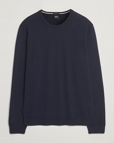 BOSS BLACK Leno Wool Crew Neck Pullover Dark Blue