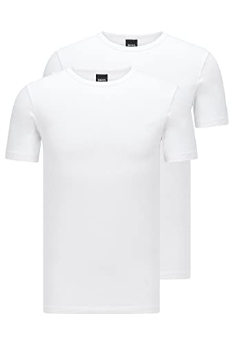 BOSS Hugo 2-pack Slim Fit rund hals t-shirt, skjorta RN Uni S–XXL – svart eller vit, Vit, S