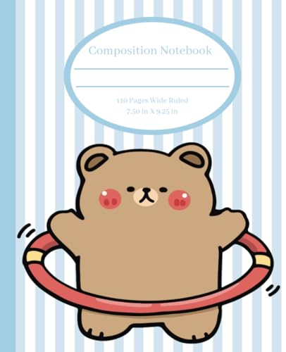 Cute Composition Notebook: Bear Hula Hoops, Wide Ruled, 7.50in x 9.25in, 110 pages