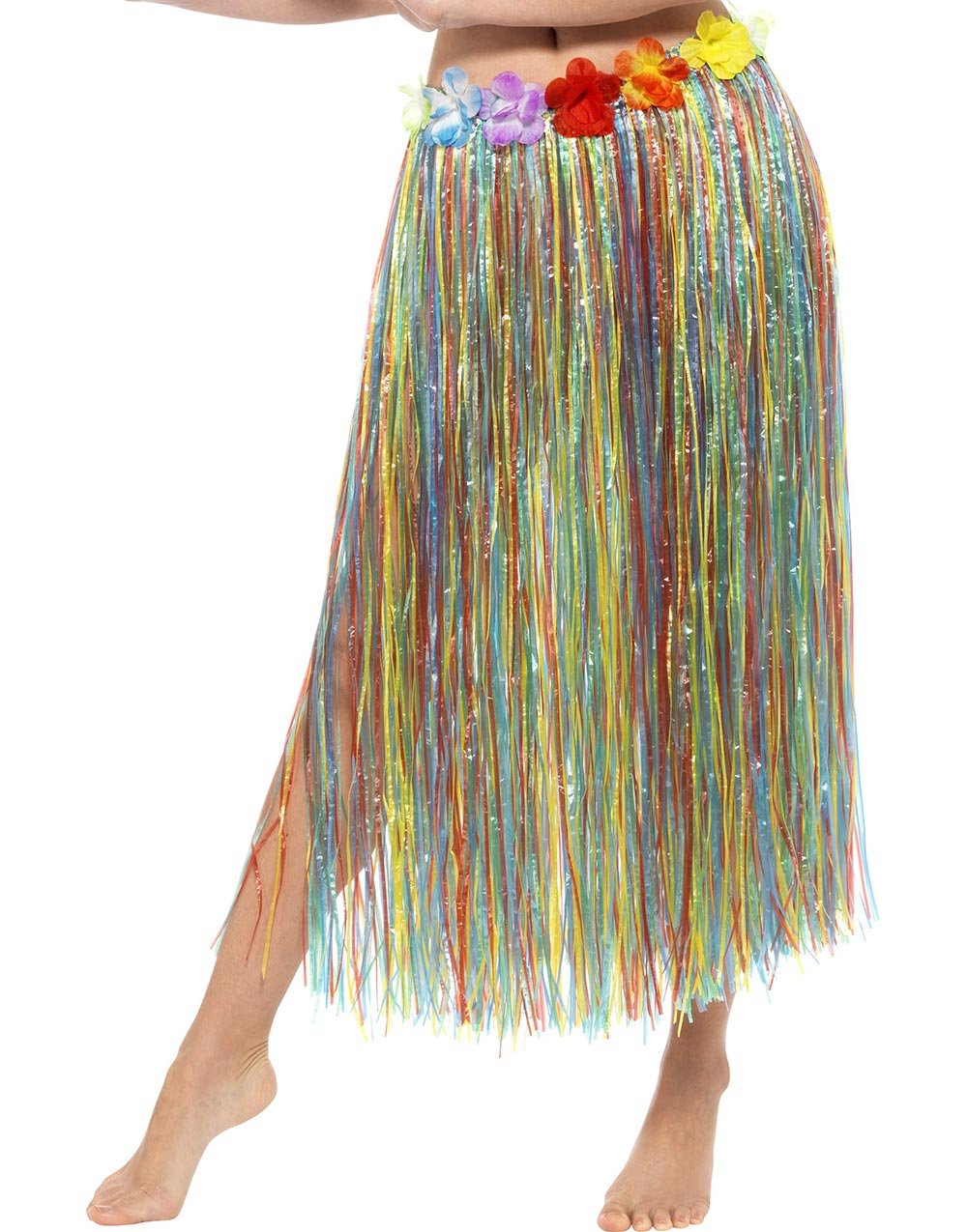 Lång Hawaii Hula-Kjol med Blommor 75 cm