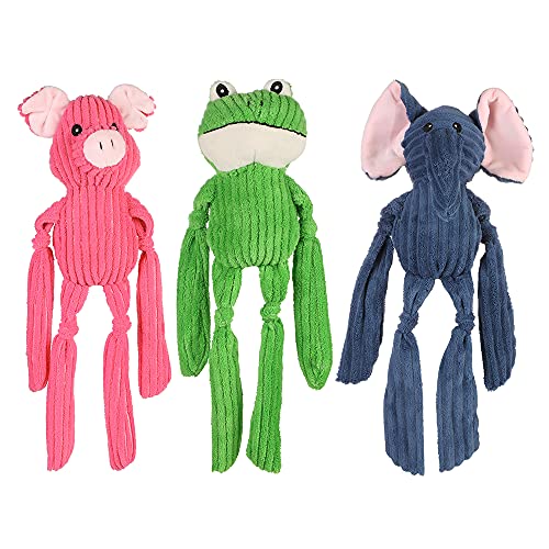 MoP Pipande hundleksak 3-pack leksaksset, mjuk plysch hållbar valp hund tuggleksaker - gris, groda och elefant