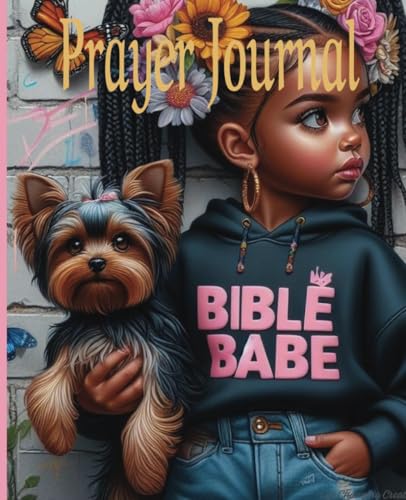 Prayer Journal plus Nightly Check-in African American Female Braided Hair Ponytails Small Dog Butterfly Flowers Bible Babe Hoodie Diary Notebook 7.5x9.25 120 Pages