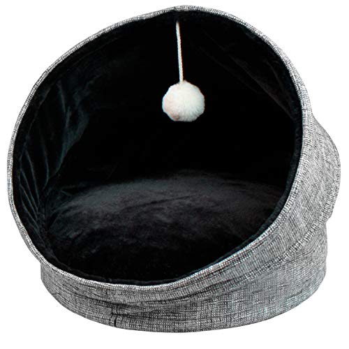 Korsar Skjäll/Hund/Igloo för Hundar Och Katter Glam, Möbler Tyg + Eco Päls, Löstagbar, Mått 44X44X48Cm, Färg Svart - 3125 g