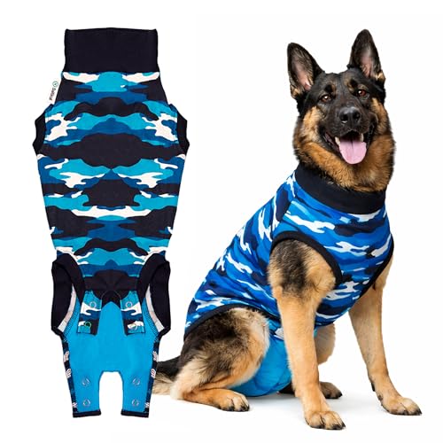 Suitical Recovery Suit Dog, Hund Kropp efter Operation, Kamouflage Blå, L