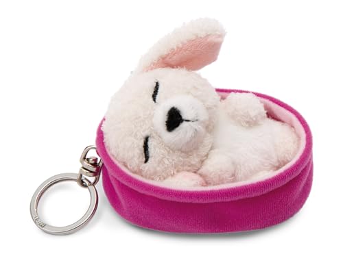 Nyckelhållare sovande husdjur Hund ljusbrun 8 cm korg rosa - Hållbar följeslagare i form av en gosedjursnyckelring för nyckelband, väska, ryggsäck och mycket mer