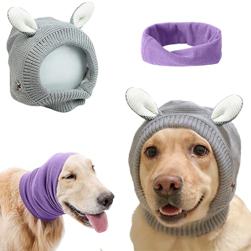 YolentQuiet Ears för hundar ångest skällande hund öronskydd muffar för buller 2 st hund öron hörsel öronmuffar fyrverkerier skydd anti-ångest hundhatt för medelstora till stora hundar (grå + lila)