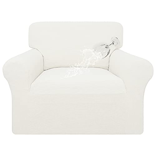Easy-Going 100% vattentätt sofa skydd, dubbelt vattentätt, stretch jacquard, läckagesäkert för barn, husdjur, hund och katt (stol, kräm)