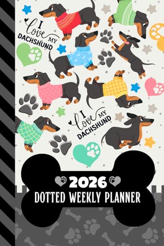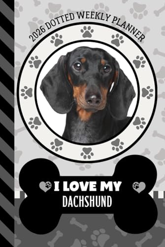 2026 Dotted Weekly Planner: Hardcover / Dated 6x9 Vertical Weekday Layout With Dot Grid Note Pages / Habit Tracker / Jan - Dec / Small Personal Diary / I Love My Dachshund Dog Art Cover