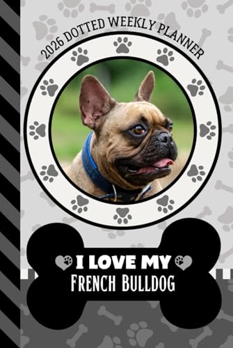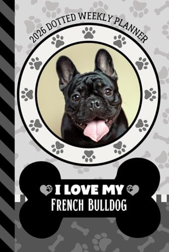 2026 Dotted Weekly Planner: Hardcover / Dated 6x9 Vertical Weekday Layout With Dot Grid Note Pages / Habit Tracker / Jan - Dec / Small Personal Diary / I Love My Gray French Bulldog Dog Art Cover