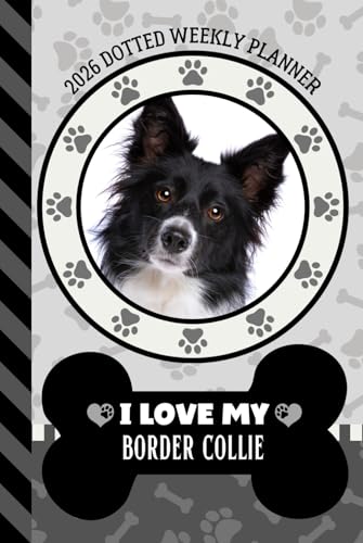 2026 Dotted Weekly Planner: Hardcover / Dated 6x9 Vertical Weekday Layout With Dot Grid Note Pages / Habit Tracker / Jan - Dec / Small Personal Diary / I Love My Border Collie Dog Art Cover